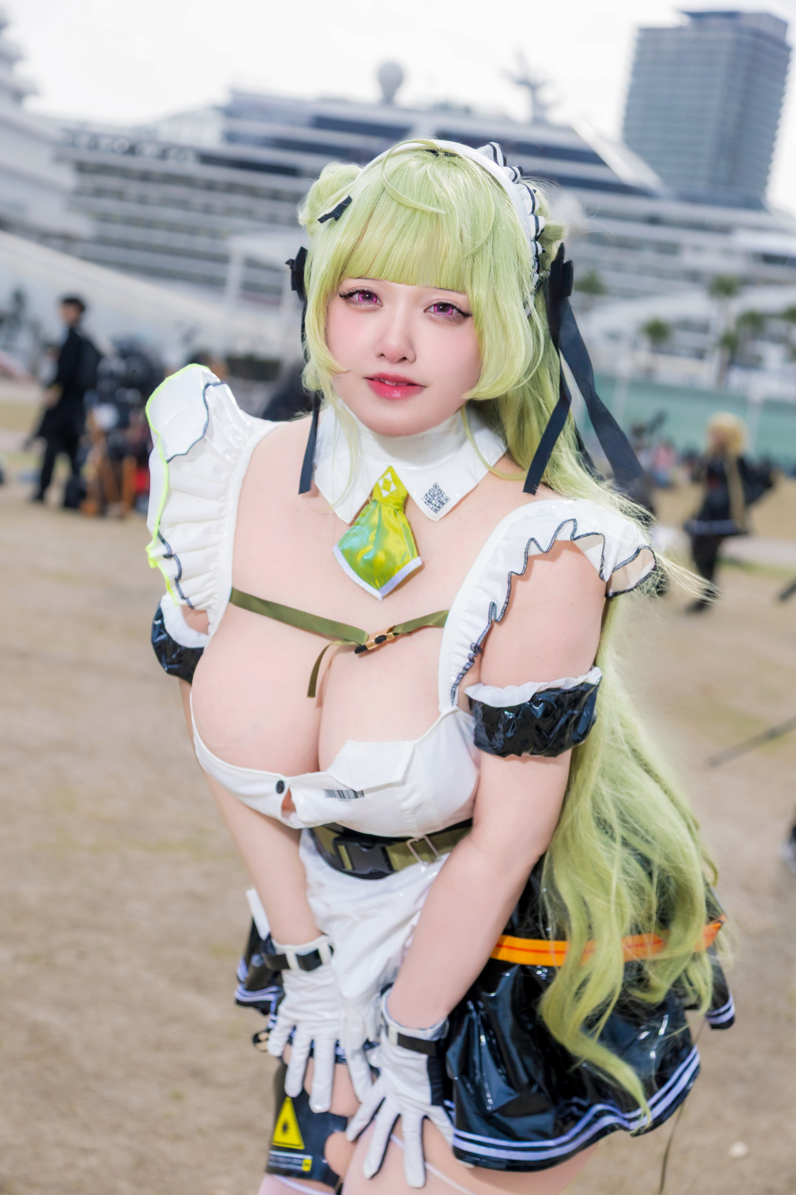 これは里世界さんの衣装なんだけど、ここのだけがソーダちゃんのメイド服がこのフェイクレザー素材でしっかりしてるんだよね💭