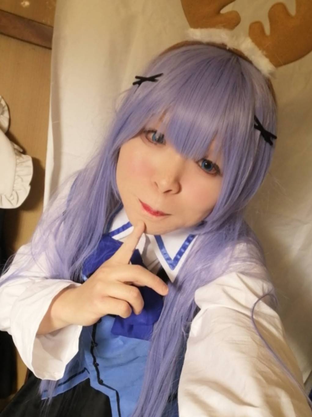 トナカイのカチューシャつけてます